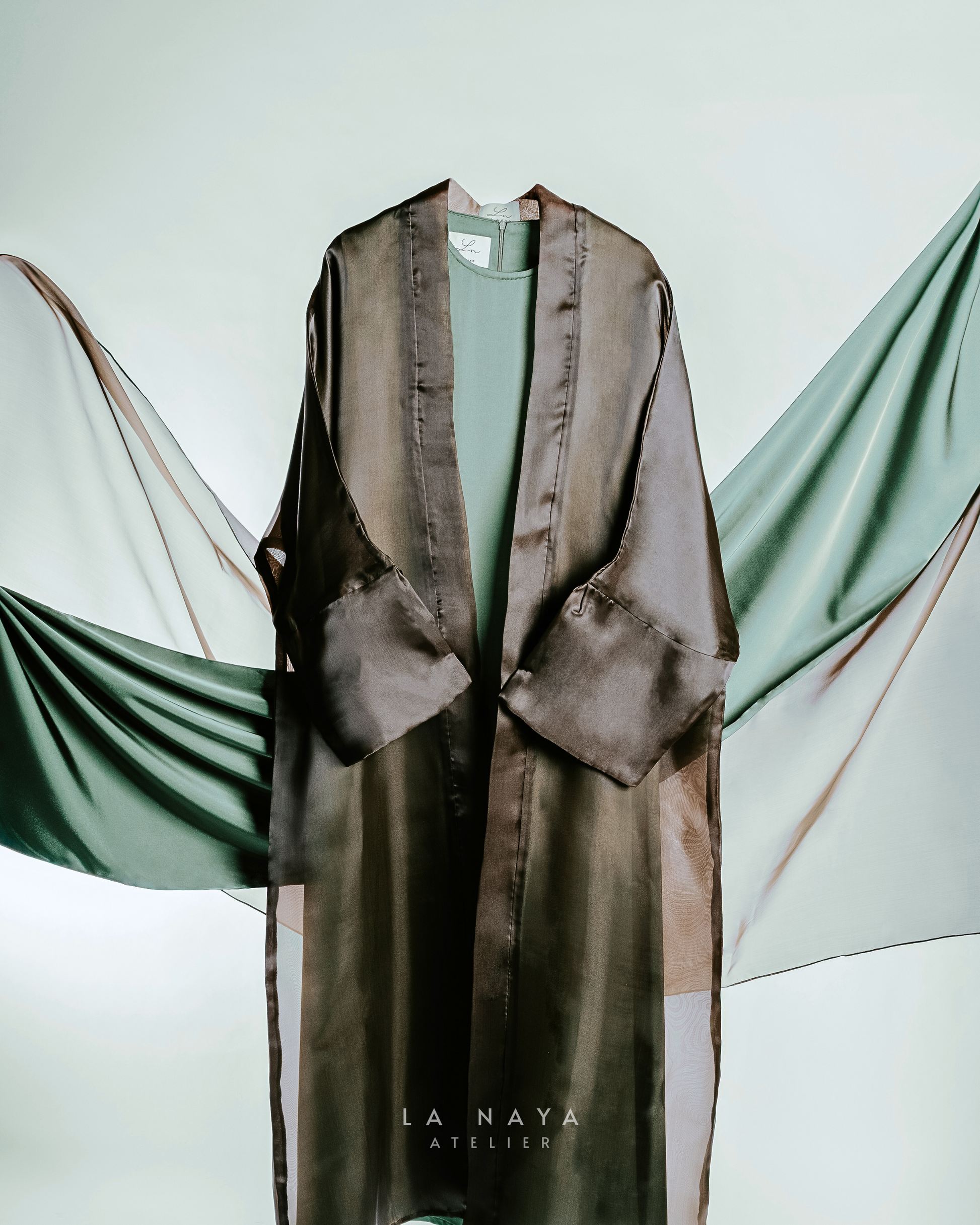 Verde Dora is strength in stillness — a deep, grounded green inspired by the rare Ferrari shade, by earth and resilience. Rich in tone and quietly commanding, it speaks in depth and shimmer. Crafted with a heavy satin base and sheer organza layering, it holds presence without weight.